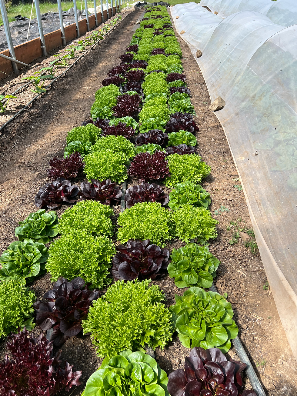 Within each environment, we established paired beds to test another common practice: plastic mulch versus no mulch. All beds received identical inputs—same compost, same organic 4-4-4 fertilizer, same Salanova lettuce varieties, same drip irrigation.
